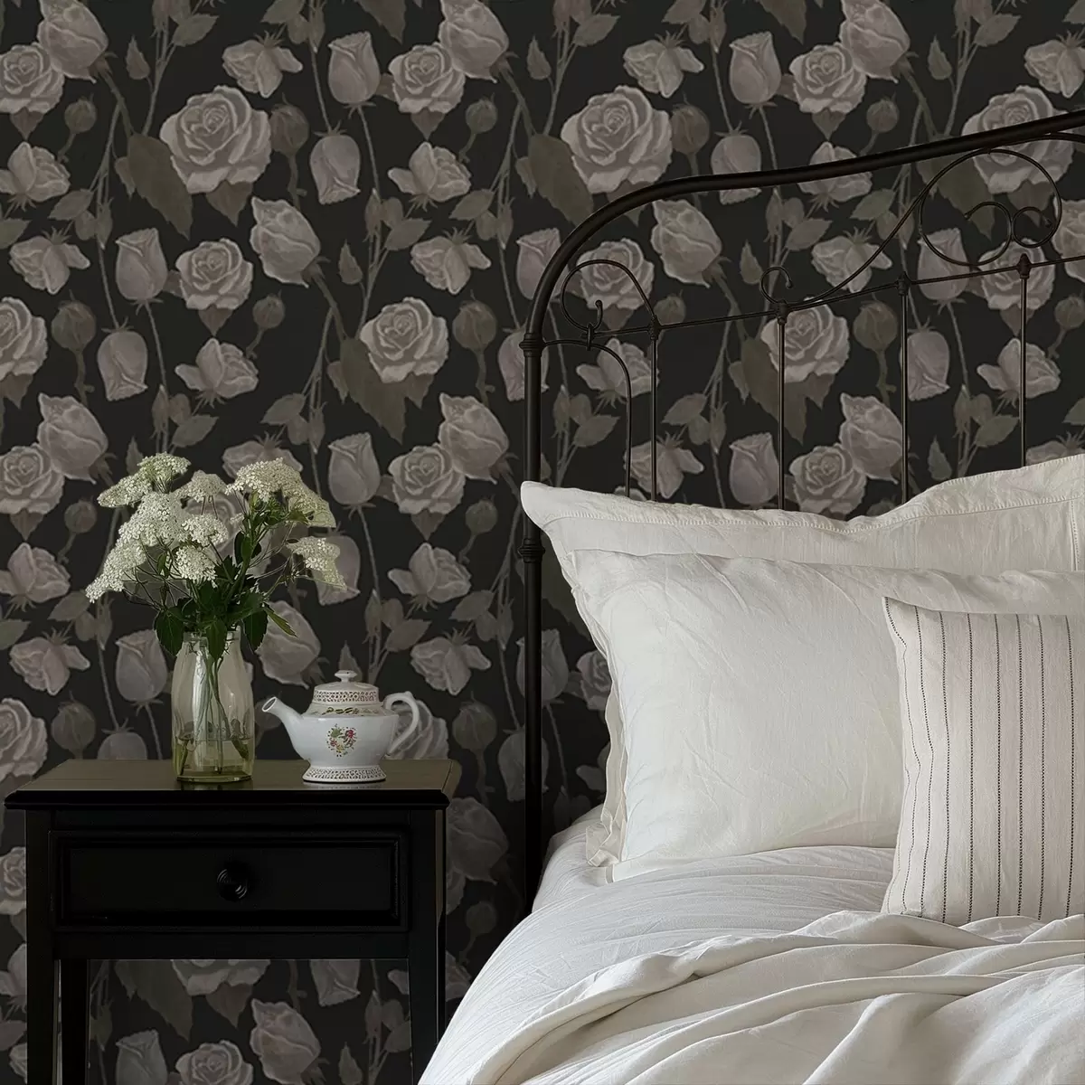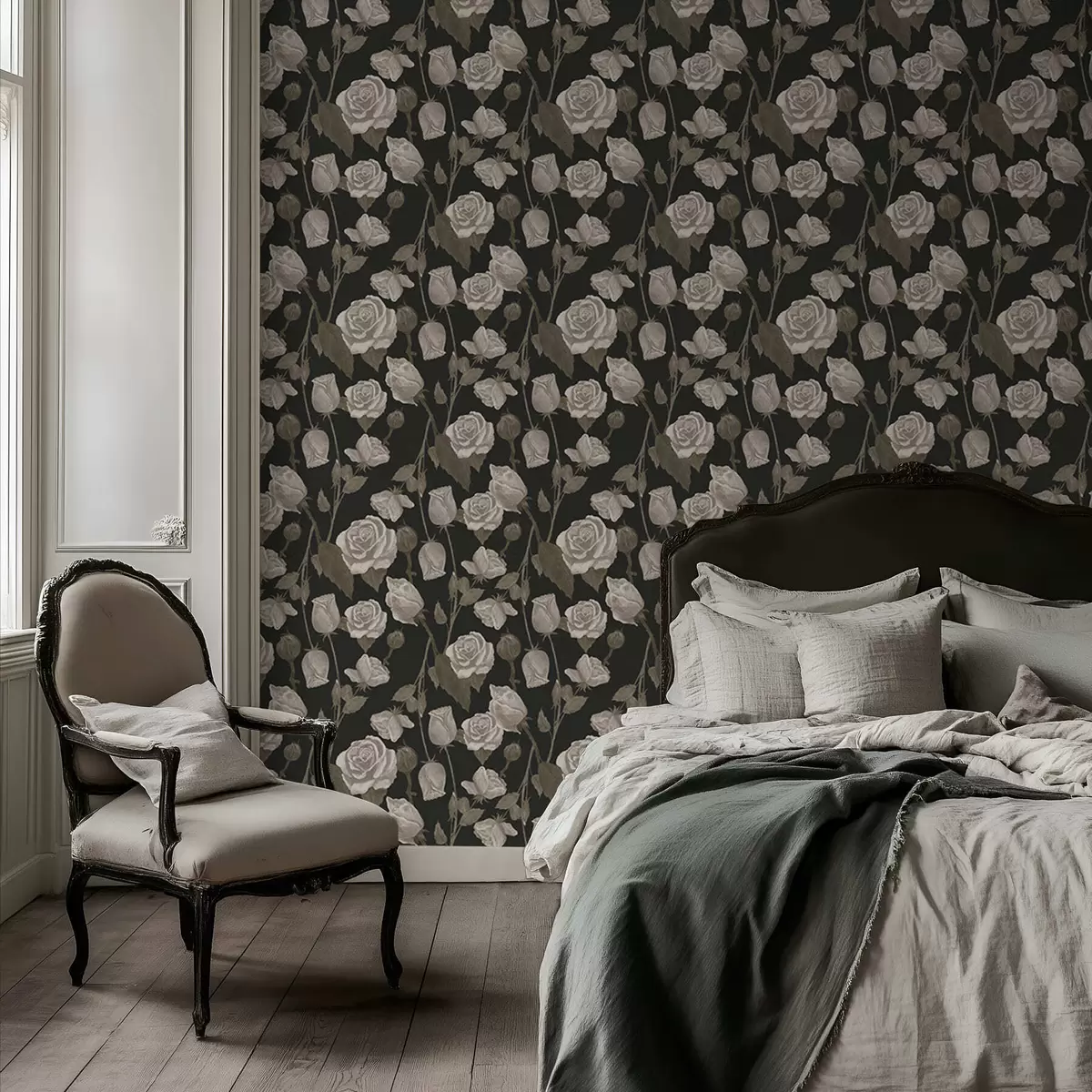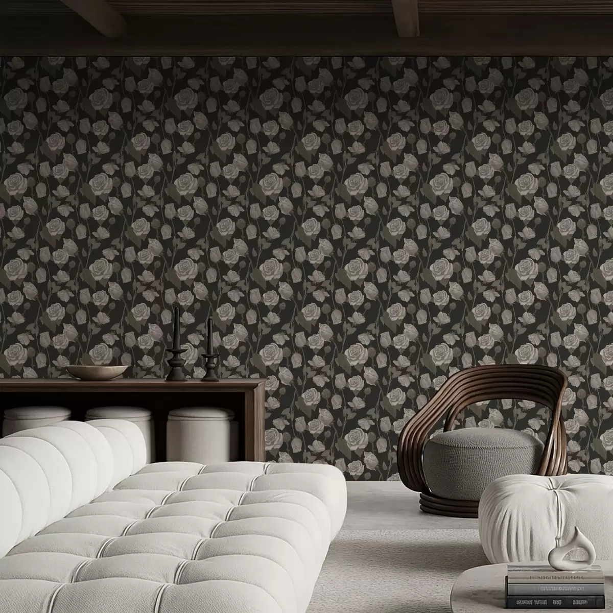 Tapeta Цветни узорак са ружама на тамној позадини бр. a01123