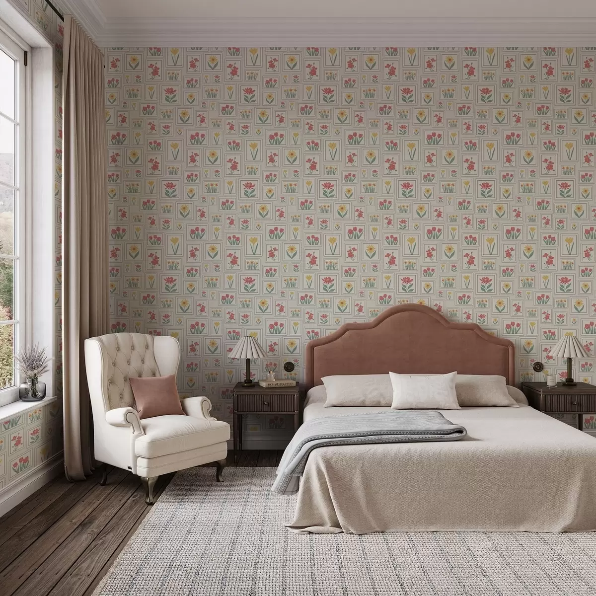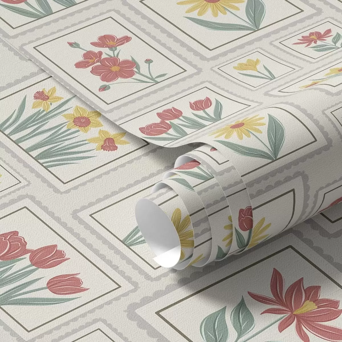 Tapeta Урамљене цветне илустрације на светлој позадини бр. a01173v1