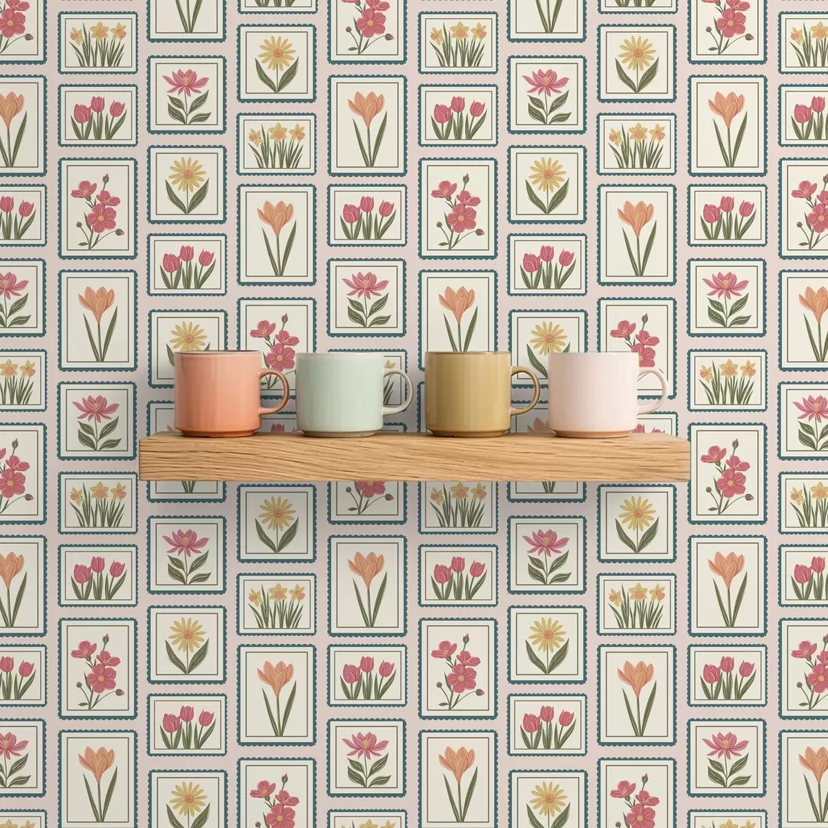 Tapeta Урамљене цветне илустрације са бордурама бр. a01174
