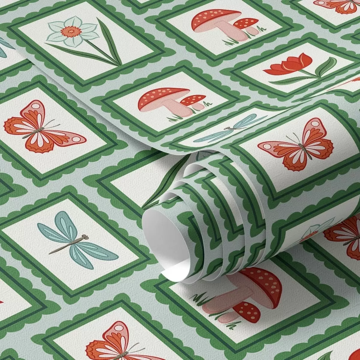 Tapeta Урамљено цвеће, печурке и лептири бр. a01175