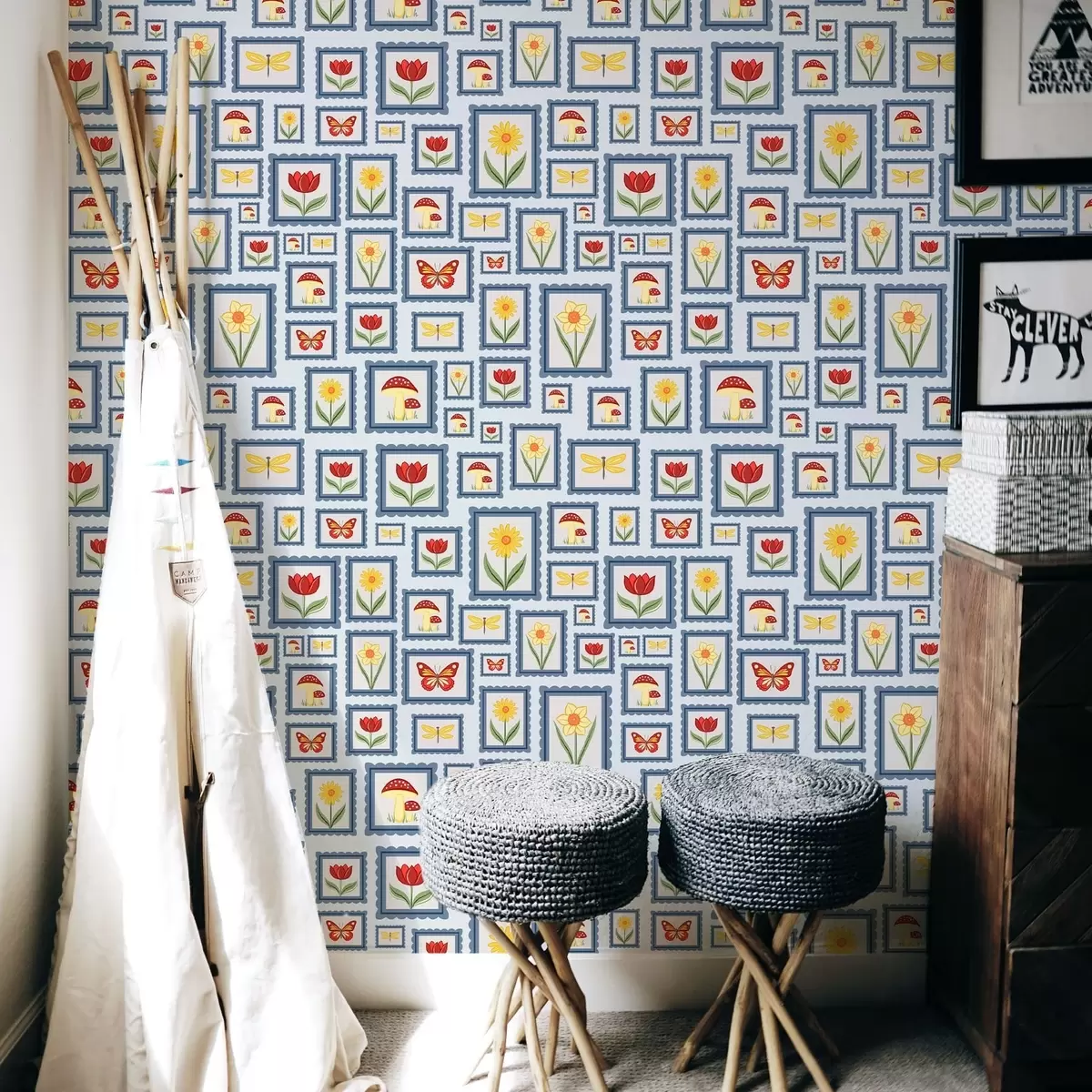 Tapeta Урамљене илустрације на плавој позадини бр. a01176