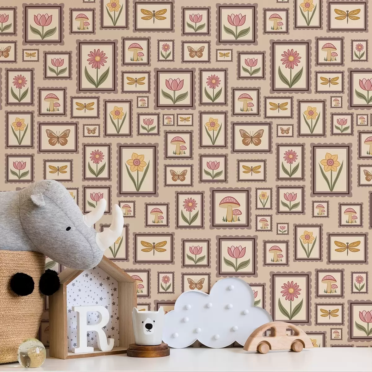 Tapeta Урамљене илустрације у топлим беж тоновима бр. a01176v2