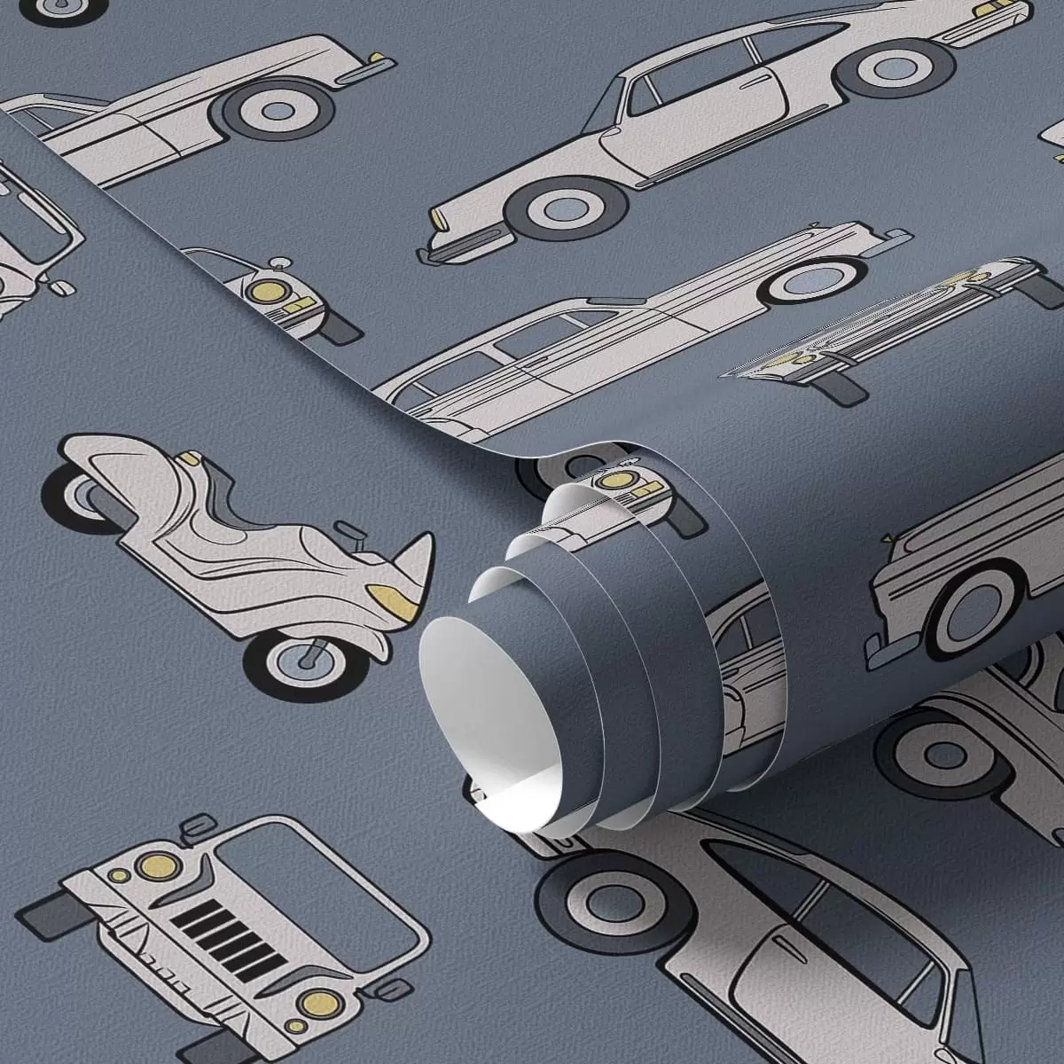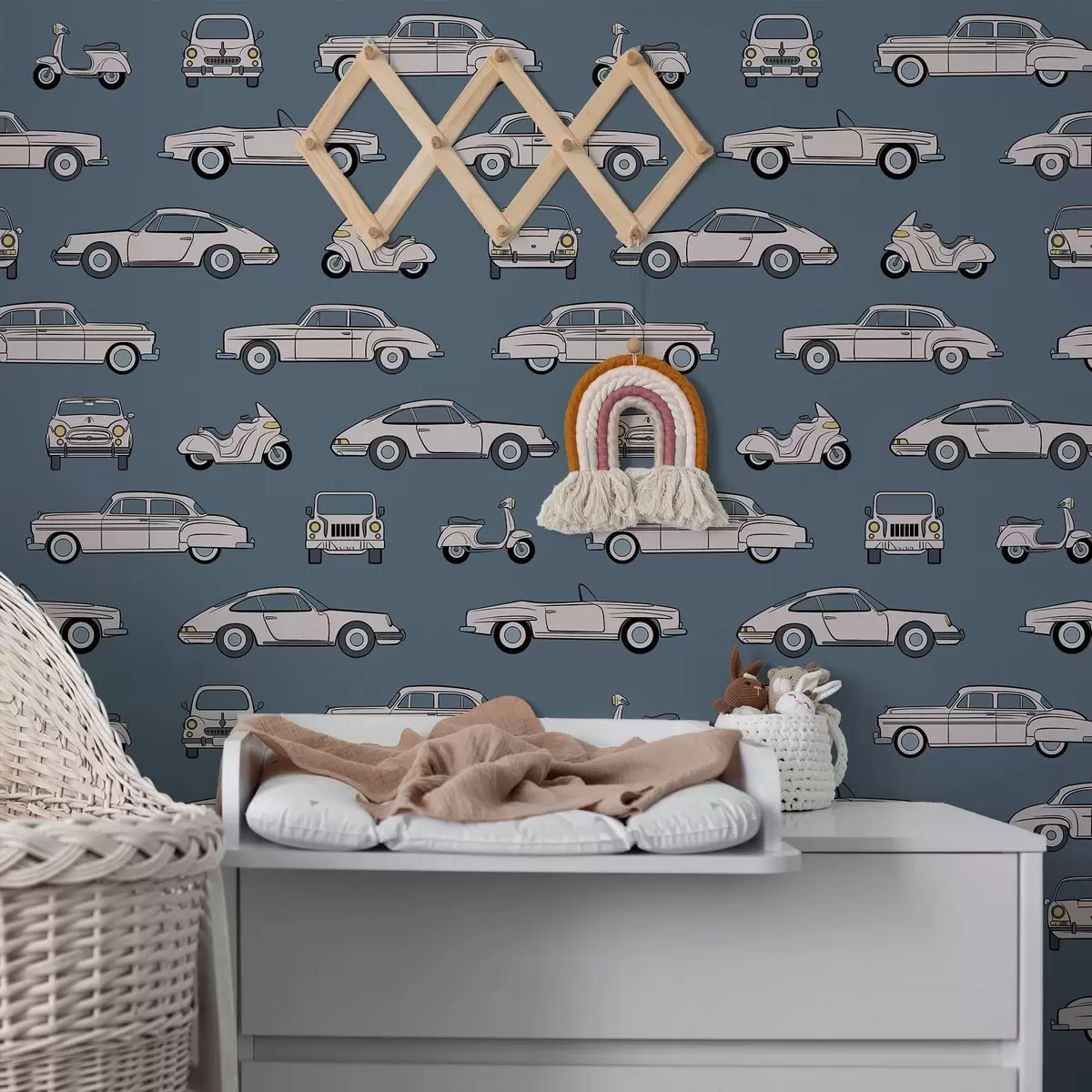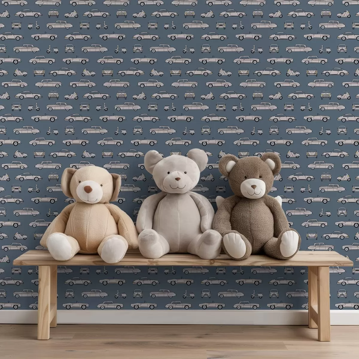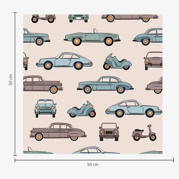 Tapeta Ретро аутомобили и скутери на плавој позадини бр. a01178
